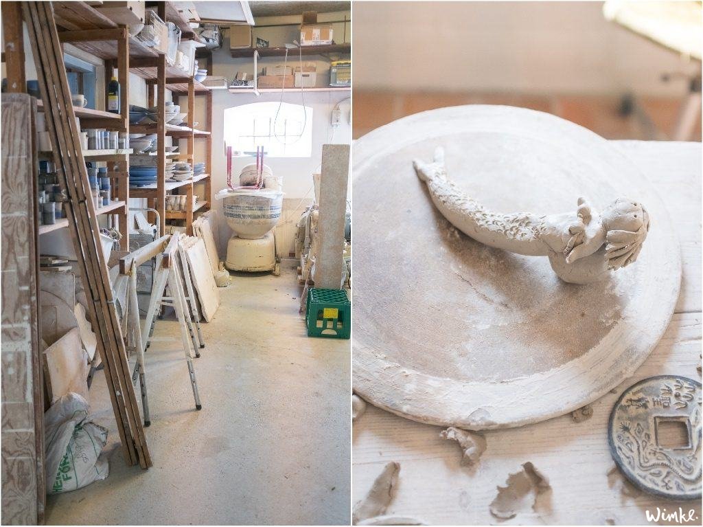 Mijn favoriete activiteit van de vakantie was de keramiekworkshop van Vibe in Lønstrup. Vibe heeft een prachtig winkeltje met handgemaakt servies, bloempotten, kandelaars…. Alles zelfgemaakt met een knipoog naar de stranden van Noord Jutland. Ik kreeg een spoedcursus pottenbakken wat zo ontzettend makkelijk lijkt en helemaal niet is. De klei zat zelfs in mijn schoenen, maar wat was het leuk! Madee maakte en zeemeermin en Bente een schaaltje voor lekkernijen. In haar keramiek winkel serveert ze ook ontbijt en lunch. En daar werden we heel blij van. Eigengemaakte crackers, brood en beleg van de lokale boer geserveerd in haar eigen servies.